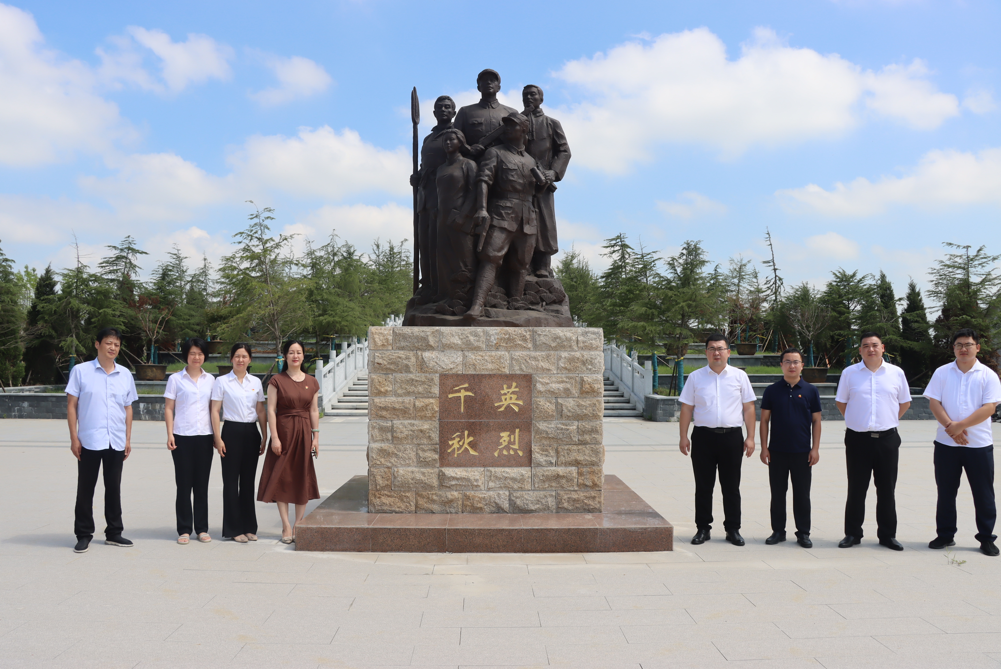 最后,大家一同前往長豐縣烈士陵園,浩氣貫長虹,豐碑一座;北鄉(xiāng)歌烈士,偉績千秋。邁上28級臺階,象征1921年建黨到1949年建國28年艱苦奮斗歷程。登上臺階后,來到公祭廣場,映入眼簾的是高21.7米的革命烈士紀(jì)念碑,在紅星的照耀下,毛體金字“革命烈士永垂不朽”熠熠生輝。大家莊嚴(yán)肅穆,緬懷革命烈士。