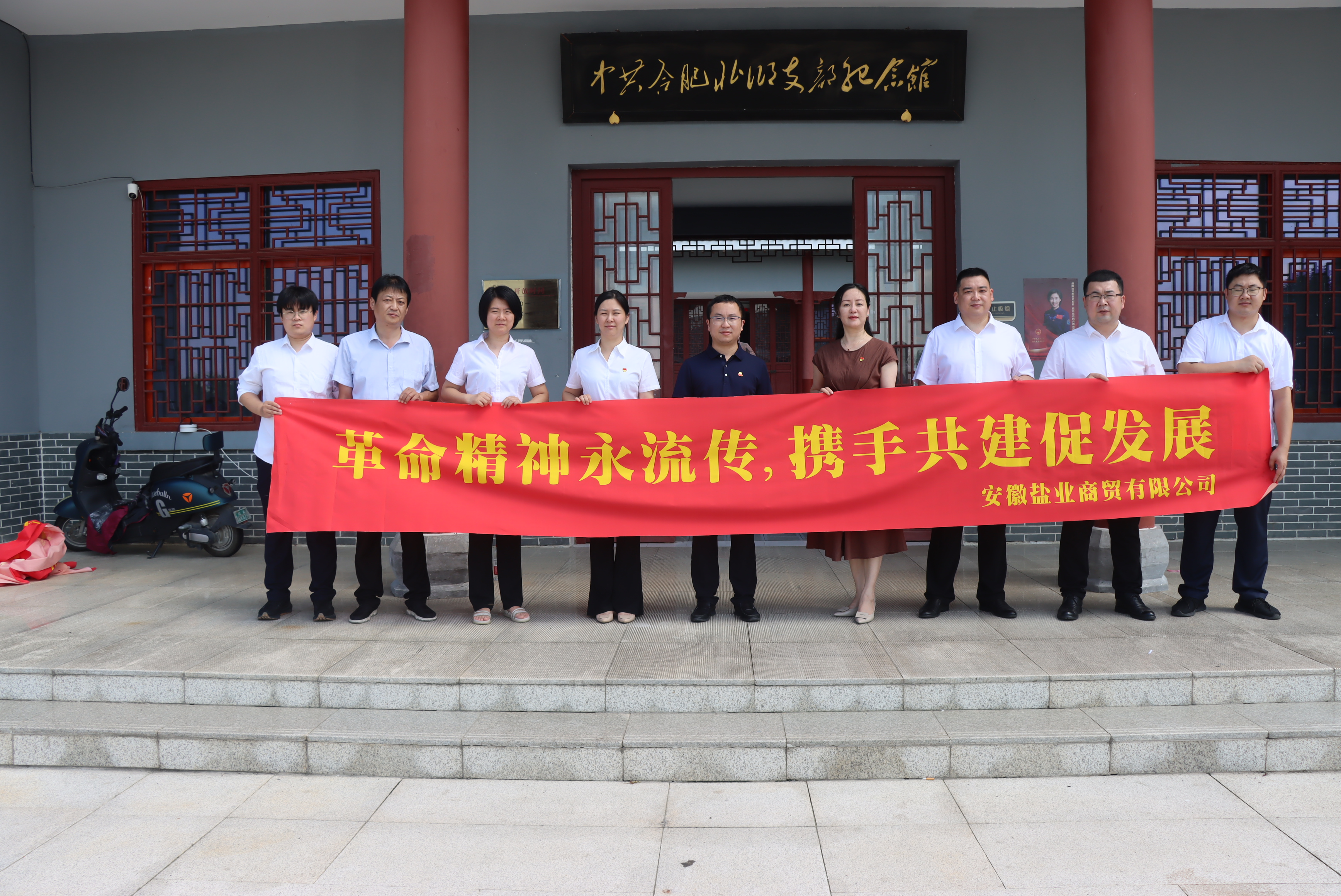 為全面、系統(tǒng)、深入學(xué)習(xí)習(xí)近平新時代中國特色社會主義思想,慶祝中國人民解放軍建軍96周年,7月27日上午,安徽鹽業(yè)商貿(mào)有限公司黨支部攜手貴州茅臺銷售公司駐外三支部赴中共合肥北鄉(xiāng)支部紀(jì)念館聯(lián)合開展黨建共建活動,接受紅色精神洗禮。