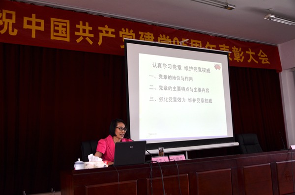 吳梅芳教授為大家作了題為“認(rèn)真學(xué)習(xí)黨章、維護(hù)黨章權(quán)威”的專題黨課。她從黨章的地位和作用、黨章的主要特點與主要內(nèi)容以及強(qiáng)化黨章效力、維護(hù)黨章權(quán)威等方面詳細(xì)解讀了黨章的總綱、條文內(nèi)容與邏輯結(jié)構(gòu)。她用樸實的言語、典型的事例全面系統(tǒng)的解讀了黨章的地位和作用、黨章主要特點和主要內(nèi)容,詮釋了認(rèn)真學(xué)習(xí)黨章、嚴(yán)格遵守黨章的重要性,闡述了強(qiáng)化黨章效力、維護(hù)黨章權(quán)威的現(xiàn)實意義。