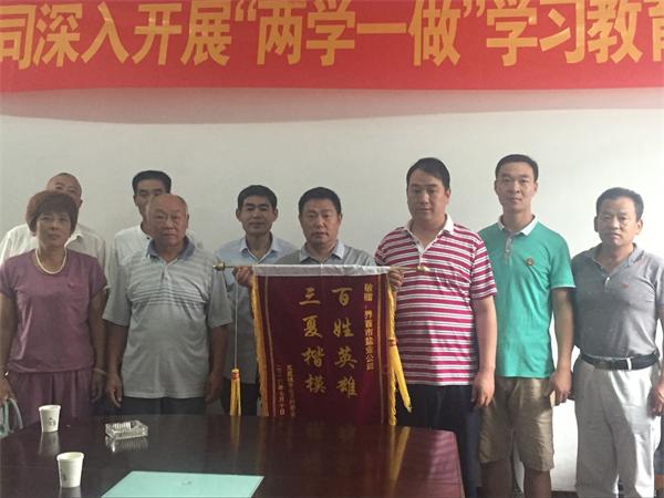 7月10日上午,界首市公司幫扶結(jié)對及秸稈禁燒工作責任區(qū)的界首市光武鎮(zhèn)李廟王行政村兩委一行8人,為界首市公司送來一面上書“百姓英雄 三夏楷?!钡腻\旗。