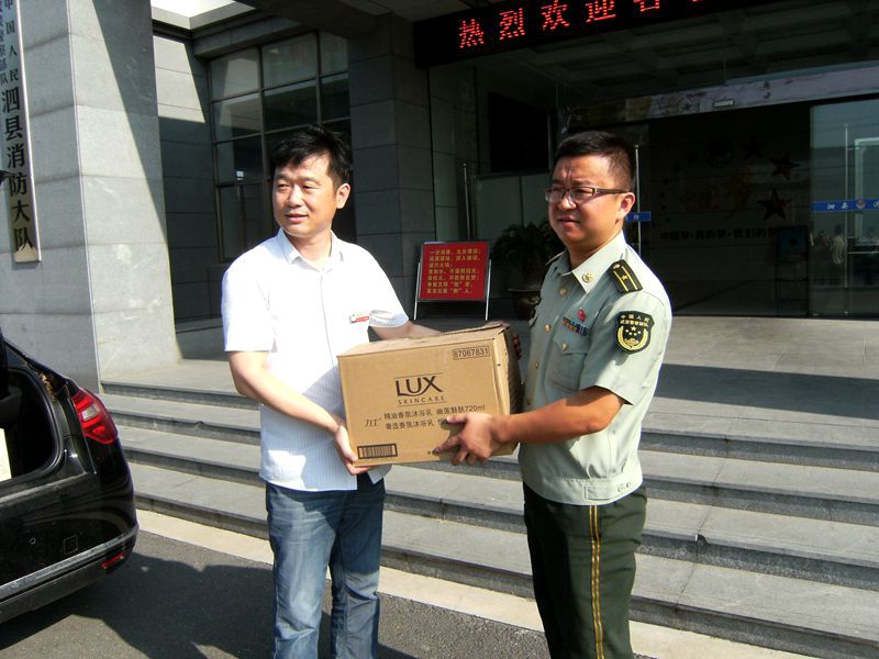 邢厚生一行為消防官兵送去了防暑降溫用品,并代表泗縣公司向消防官兵致以節(jié)日祝賀和誠摯問候,對(duì)消防官兵多年來對(duì)泗縣公司消防安全和經(jīng)濟(jì)發(fā)展作出的貢獻(xiàn)表示衷心感謝。消防大隊(duì)領(lǐng)導(dǎo)對(duì)邢厚生一行的到來表示熱烈歡迎,并表示將繼續(xù)發(fā)揚(yáng)人民軍隊(duì)的優(yōu)良傳統(tǒng),盡職盡責(zé),確保一方平安。