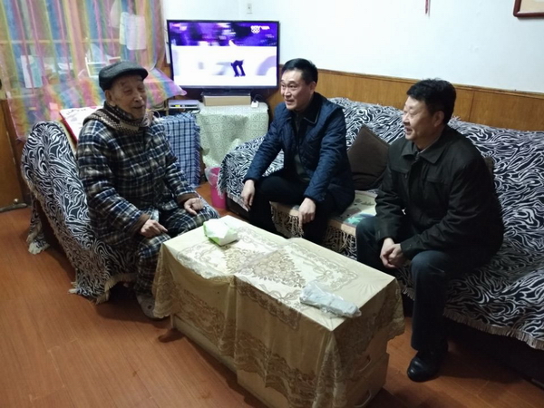 張鷹一行來到抗戰(zhàn)老戰(zhàn)士王璦和公司老書記張富貴家中,親切地與他們拉家常、話當(dāng)年,詳細(xì)詢問他們的身體健康和生活起居情況,并送上慰問金和慰問品,一再叮囑他們要保重身體、延年益壽。