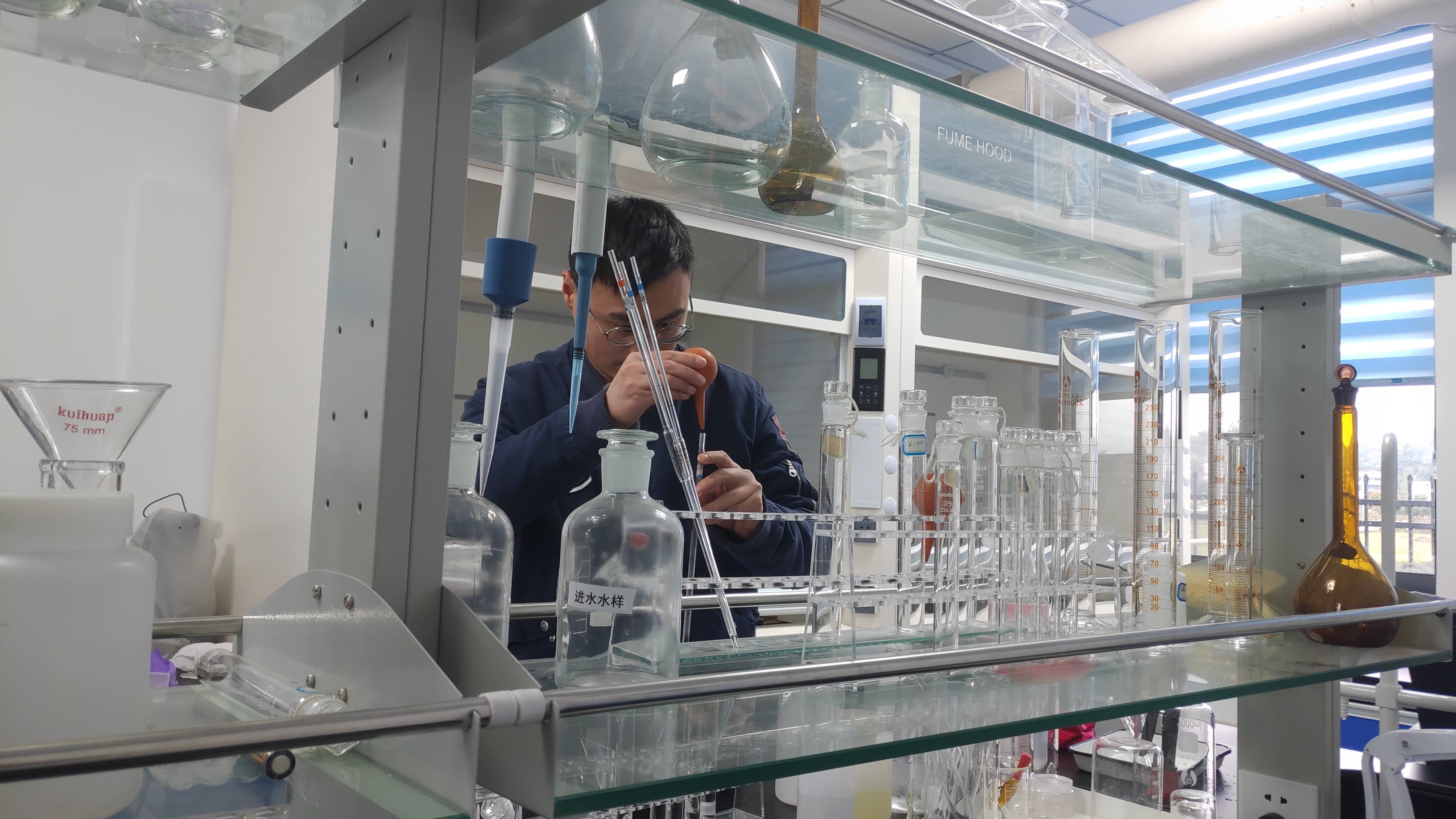 (上圖為檢測員正在對污水處理廠進(jìn)水水質(zhì)進(jìn)行檢測)