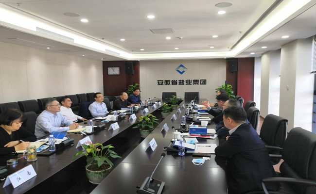 王思軍對趙玉祥一行的到來表示歡迎,重點介紹了省鹽業(yè)集團近年來的經(jīng)營情況、業(yè)務(wù)板塊布局、轉(zhuǎn)型發(fā)展及未來戰(zhàn)略規(guī)劃。王思軍指出,省鹽業(yè)集團近年來順應(yīng)鹽業(yè)體制改革,堅定轉(zhuǎn)型發(fā)展不動搖,在做好傳統(tǒng)主業(yè)的基礎(chǔ)上,積極布局生態(tài)環(huán)保、城市更新、健康養(yǎng)老產(chǎn)業(yè),為安徽鹽業(yè)可持續(xù)、高質(zhì)量發(fā)展夯實基礎(chǔ)。