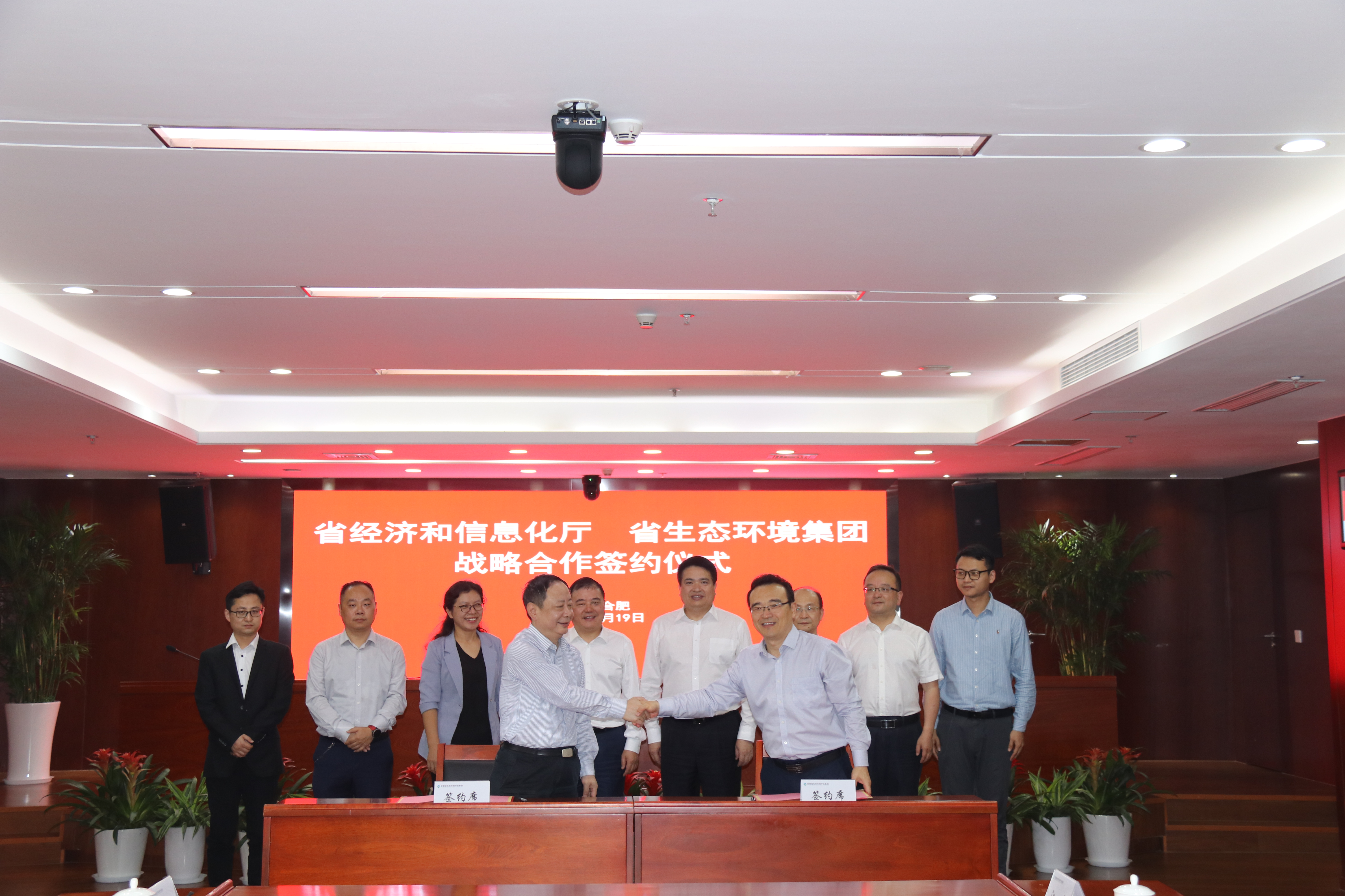 10月19日下午,省生態(tài)環(huán)境集團與省經(jīng)濟和信息化廳在省生態(tài)環(huán)境集團公司簽署戰(zhàn)略合作協(xié)議。省生態(tài)環(huán)境集團黨委書記、董事長羅太忠出席并主持簽約儀式,省經(jīng)濟和信息化廳黨組成員、副廳長程英春出席簽約儀式。