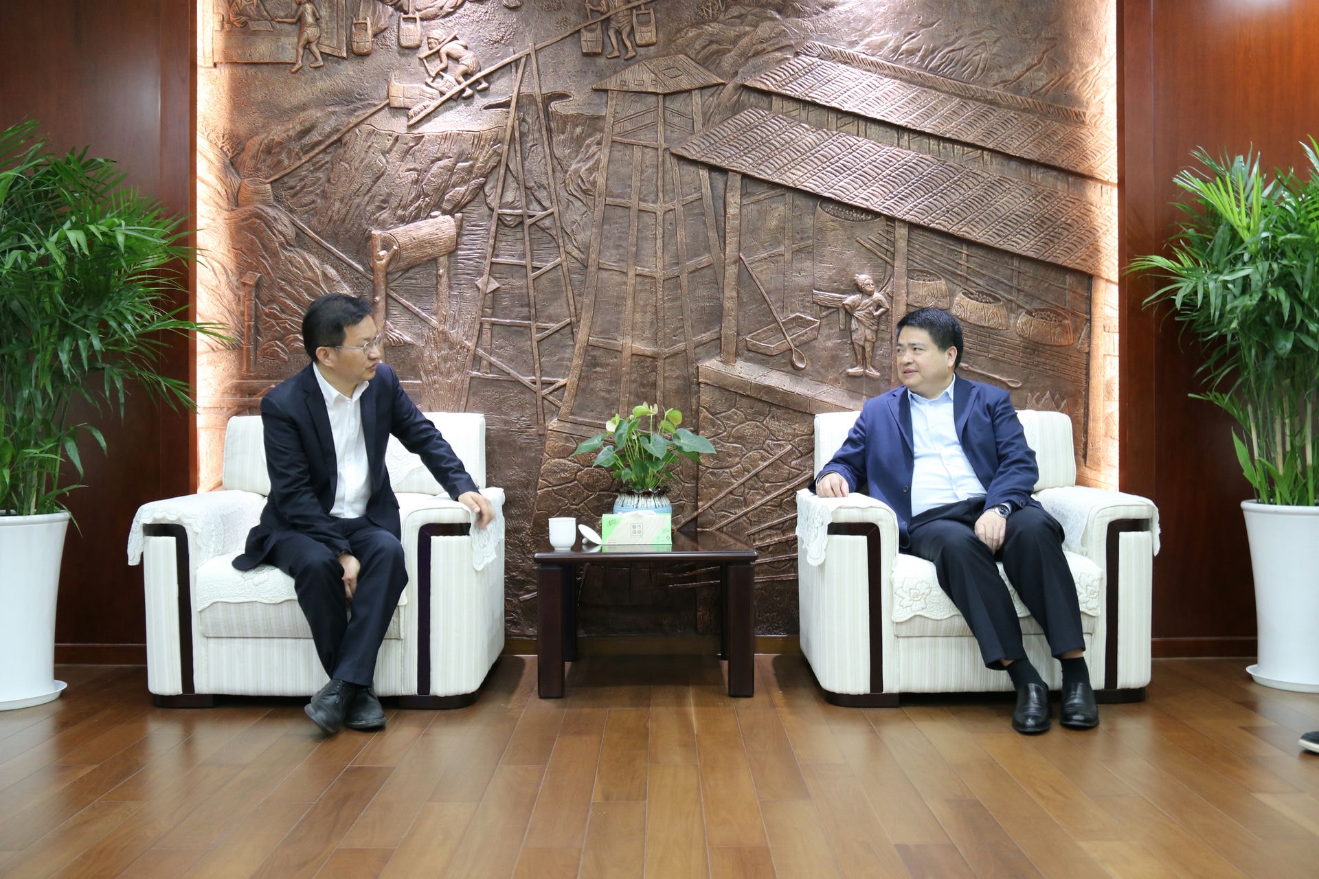 演講開始前,集團黨委書記、董事長羅太忠,集團董事劉超、程保銀,集團黨委委員、副總經(jīng)理余保山、王奇等會見了周波平一行,就深耕生態(tài)環(huán)境產(chǎn)業(yè)加強溝通合作進行了交流。