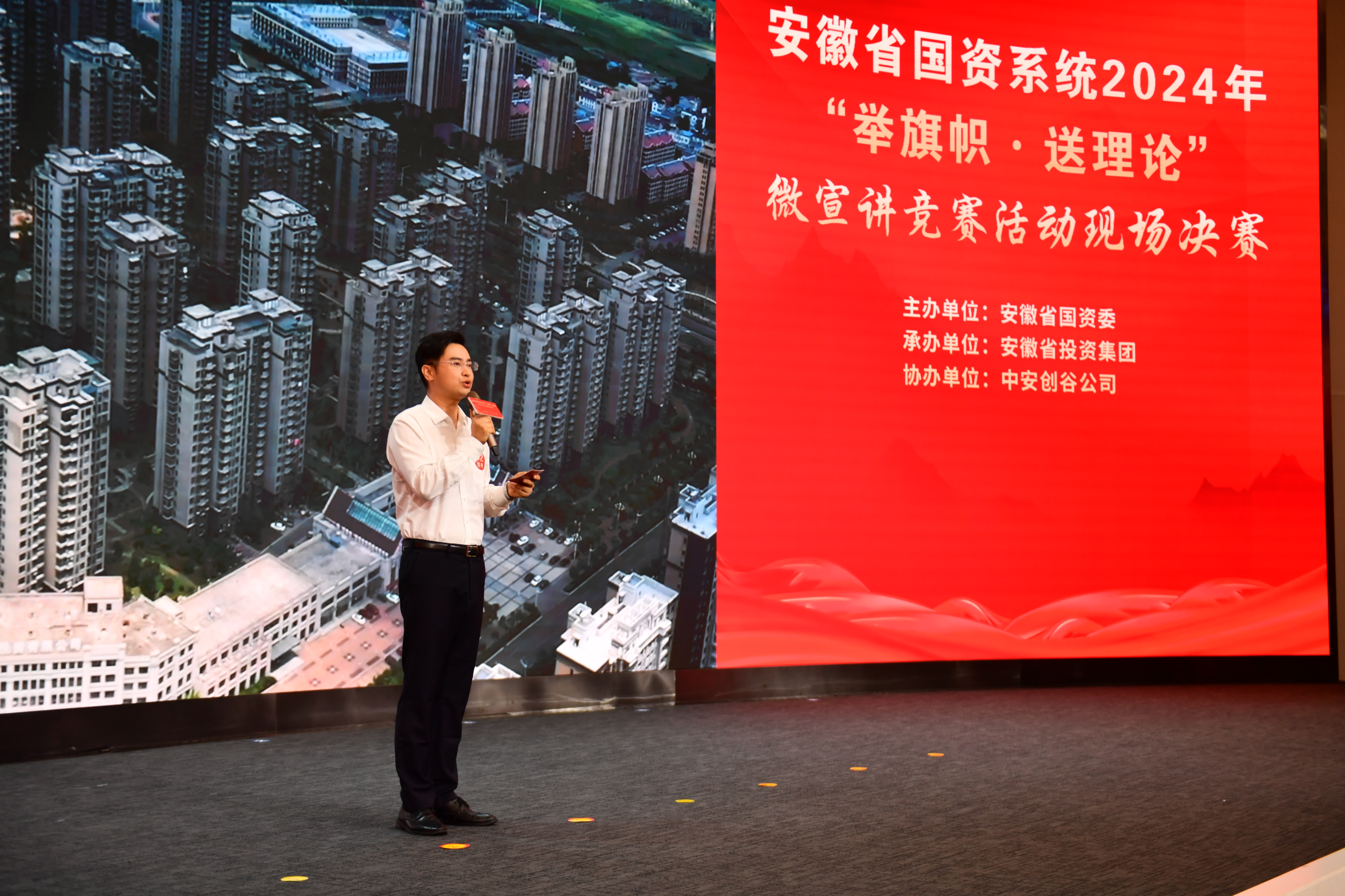 5月31日下午,安徽省國資系統(tǒng)2024年“舉旗幟·送理論”微宣講競賽活動(dòng)決賽順利舉辦,省生態(tài)環(huán)境集團(tuán)選拔報(bào)送作品《承接精神火炬,照亮前行之路》在決賽中榮獲三等獎(jiǎng)。