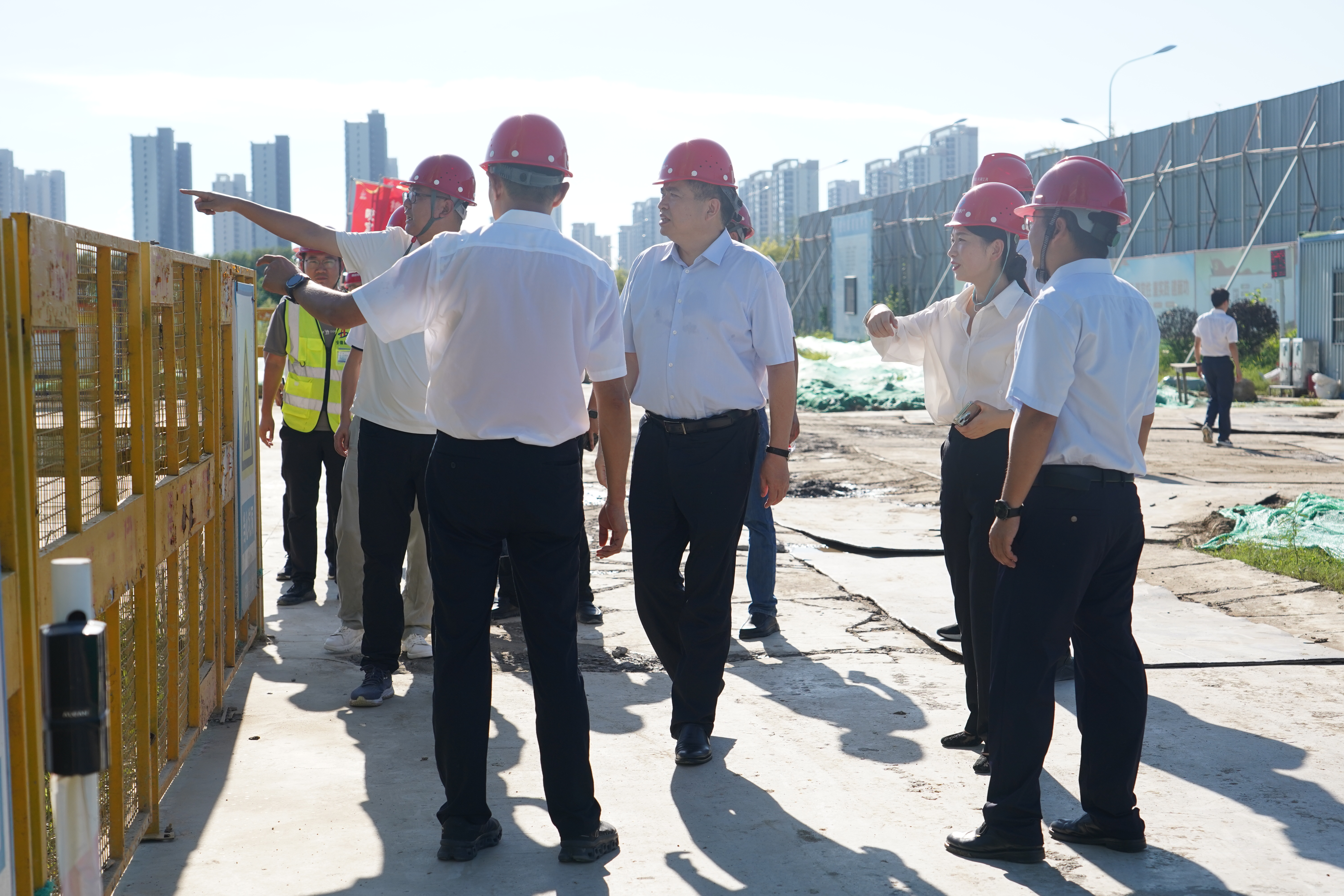 抵達項目現(xiàn)場后,羅太忠為奮戰(zhàn)在高溫一線的干部職工送上防暑降溫物資,感謝他們的辛勤付出。在項目營銷中心和二展示范區(qū),羅太忠詳細了解項目進度與銷售去化情況,現(xiàn)場查驗項目工藝工法,強調(diào)要以高標準工藝鑄造國企質(zhì)量和安全建設(shè)標桿。在施工工地,羅太忠實地了解施工建設(shè)進度和高溫作息安排,仔細檢查施工安全風(fēng)險點。他指出,安全生產(chǎn)責(zé)任重于泰山,高溫天氣下更要擰緊責(zé)任鏈條。各建設(shè)單位要進一步壓實主體責(zé)任,針對高溫作業(yè)特點細化安全防控措施,加強設(shè)備巡檢和安全培訓(xùn),確保每一項防控舉措都有人抓、有人管、有實效。要進一步加強施工組織和管理,科學(xué)合理安排作業(yè)時間,嚴格落實防暑降溫措施,科學(xué)統(tǒng)籌工程質(zhì)量和施工進度。要嚴格執(zhí)行原材料進場驗收制度,嚴防高溫高濕環(huán)境下引發(fā)的質(zhì)量隱患。要強化隱患排查整治,尤其要高度重視現(xiàn)場塔吊等大型設(shè)備、臨邊防護、深基坑作業(yè)等安全防范措施,堅決防范各類安全事故發(fā)生。要以高品質(zhì)產(chǎn)品和服務(wù),為地方經(jīng)濟建設(shè)和人居建設(shè)貢獻國企力量。