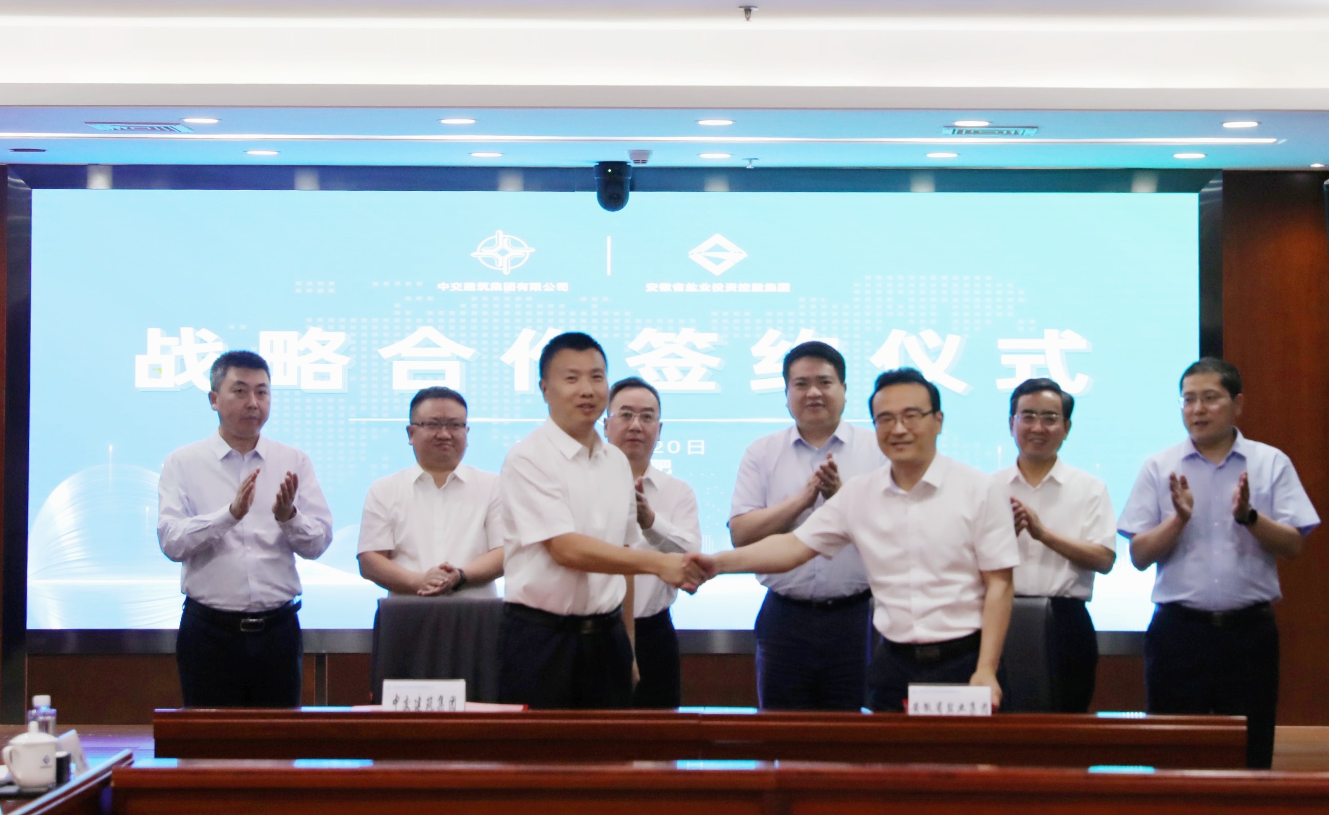 4月20日下午,安徽省鹽業(yè)投資控股集團(tuán)有限公司與中交建筑集團(tuán)有限公司在合肥簽訂投資省城市更新公司戰(zhàn)略合作框架協(xié)議。省鹽業(yè)集團(tuán)黨委書記、董事長羅太忠,黨委副書記、總經(jīng)理、董事王思軍,中交建筑黨委書記、董事長蔡彬出席儀式并見證簽約。省鹽業(yè)集團(tuán)公司黨委委員、副總經(jīng)理王奇與中交建筑集團(tuán)總經(jīng)理助理、投資事業(yè)部總經(jīng)理張強(qiáng)代表雙方簽署合作協(xié)議。簽約儀式由王思軍主持。