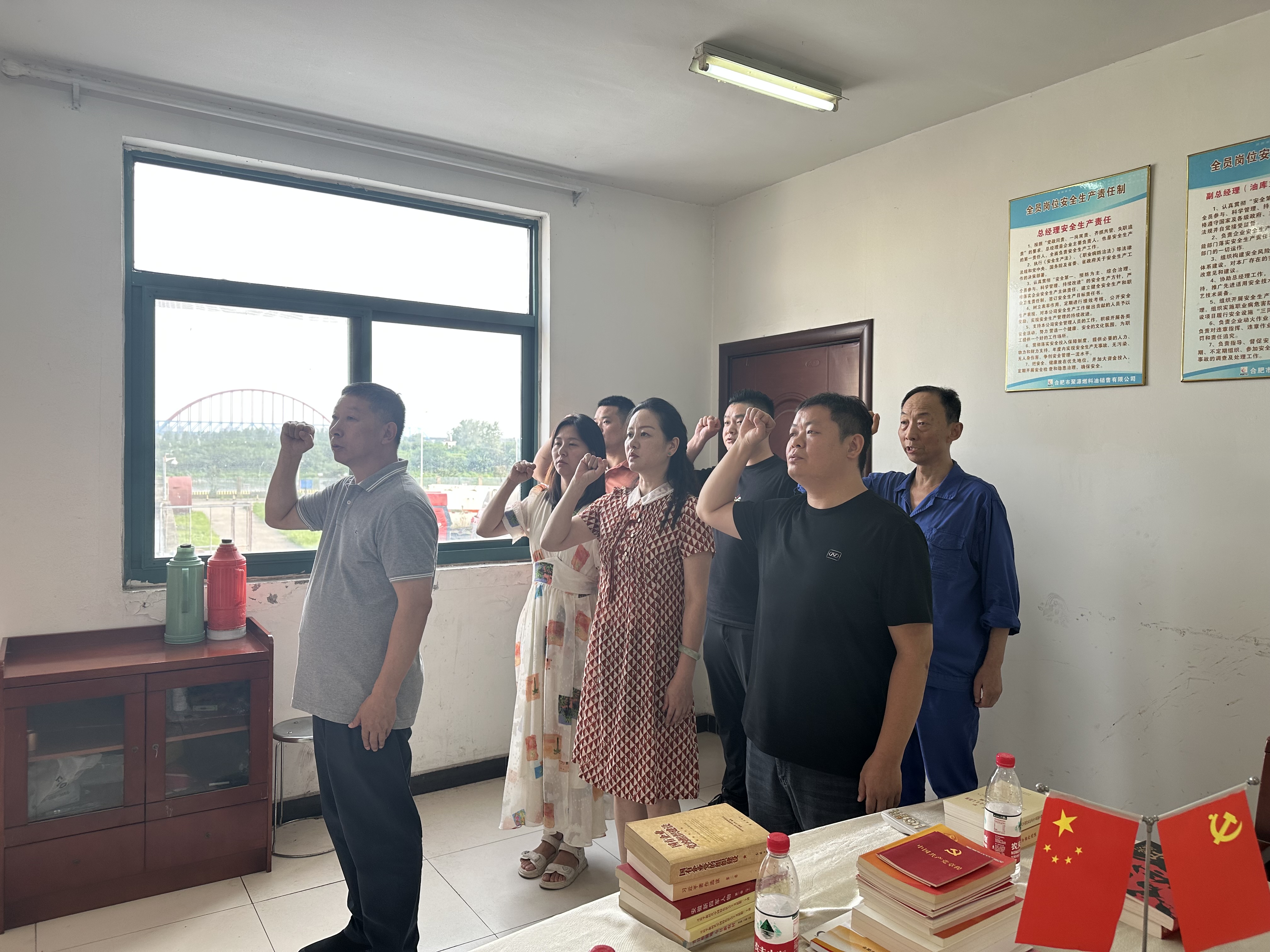 隨后,雙方黨支部書記相互交換了精心準備的黨建書籍,在合肥聚源燃料油銷售有限公司黨支部書記的帶領下,全體黨員一同面向黨旗重溫入黨誓詞。