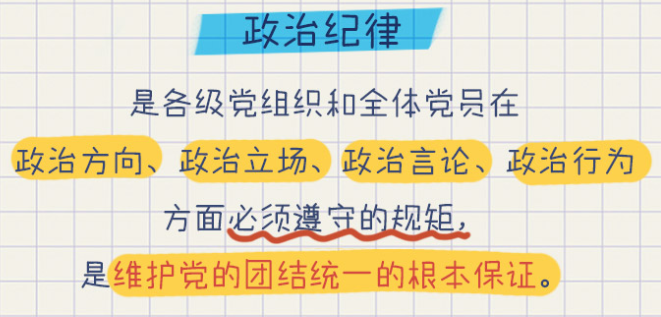 政治紀律在“六大紀律”中排在首位,說明政治紀律是最重要、最根本、最關(guān)鍵的紀律,對其他紀律具有統(tǒng)領(lǐng)性。政治紀律是各級黨組織和黨員在政治行動和政治言論兩個方面所必須遵循的規(guī)則。所以,在“對違反政治紀律行為的處分”中,把“在重大原則問題上不同黨中央保持一致且有實際言論、行為或者造成不良后果”作為第一條。就是說,在重大原則問題上不同黨中央保持一致,無論是言和行,都是不被允許、嚴厲禁止的,如果違反了,就會受到警告或者嚴重警告處分,嚴重一點,就會被撤銷黨內(nèi)職務或者留黨察看,再嚴重的,就直接被開除黨籍。