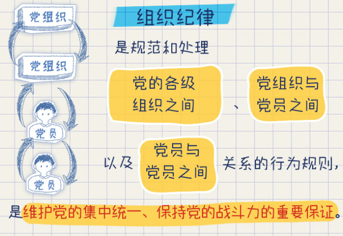 組織紀律著眼于黨員和黨組織之間的關(guān)系,規(guī)范的是黨組織和黨員遵守和維護黨在組織上團結(jié)統(tǒng)一的行為。一個人一旦入了黨,就要有強烈的組織意識和組織觀念,就必須嚴格遵守組織紀律。