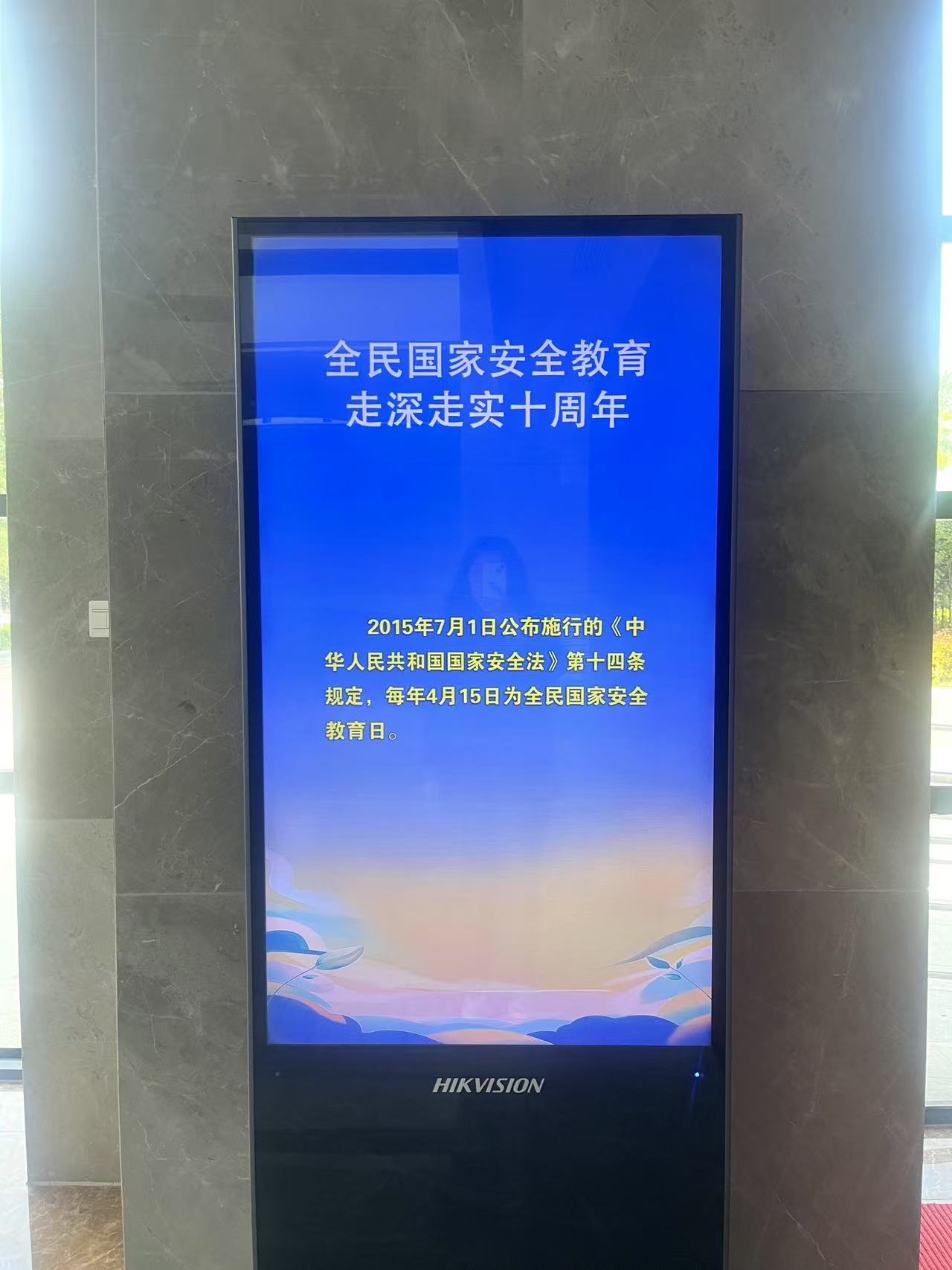 環(huán)境科技集團(tuán)在辦公區(qū)域張貼“全民國(guó)家安全教育 走深走實(shí)十周年”主題海報(bào),以醒目圖文傳遞國(guó)家安全核心要義;運(yùn)用LED顯示屏播放“4.15全民國(guó)家安全教育日”PPT,一樓大廳連續(xù)滾動(dòng)播放宣傳海報(bào)及警示案例,覆蓋員工日常辦公動(dòng)線。