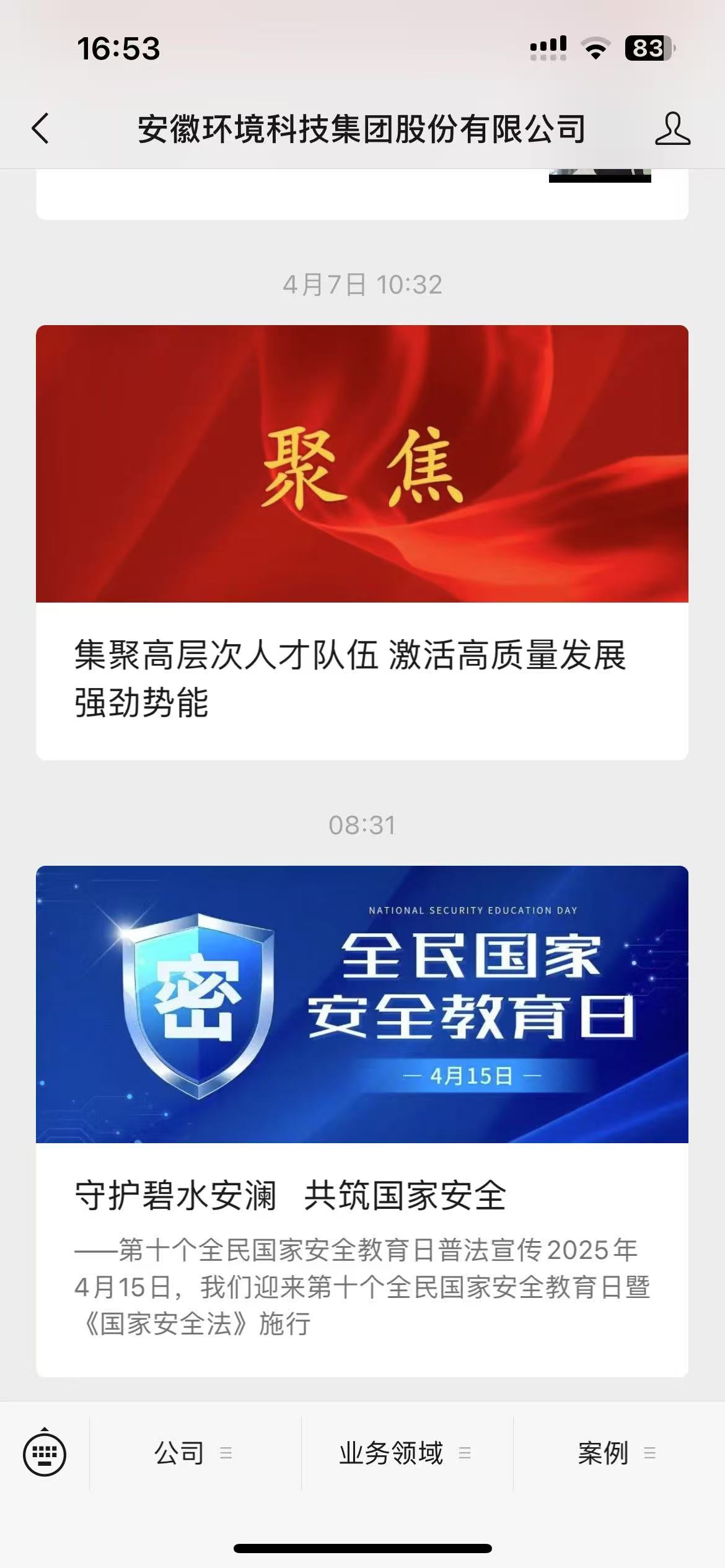 地產(chǎn)集團(tuán)微信群每日推送國(guó)家安全知識(shí)圖解、微視頻,以“碎片化學(xué)習(xí)”提升普法滲透力;集團(tuán)公司、環(huán)境科技集團(tuán)微信公眾號(hào)發(fā)布專題推文《國(guó)家安全,你我同行》,通過(guò)案例剖析、法條鏈接等形式,生動(dòng)解讀《國(guó)家安全法》《反間諜法》;徽鹽金融等子公司組織線上答題活動(dòng),覆蓋全員,以考促學(xué)鞏固國(guó)家安全基礎(chǔ)知識(shí),參與率達(dá)100%。