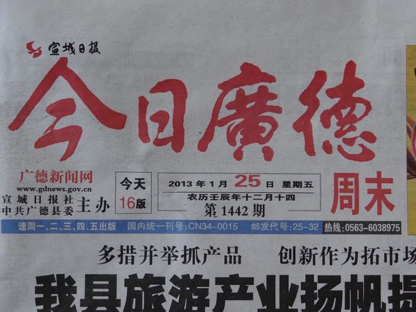 摘自2013年1月25日《宣城日?qǐng)?bào)·今日廣德》2版