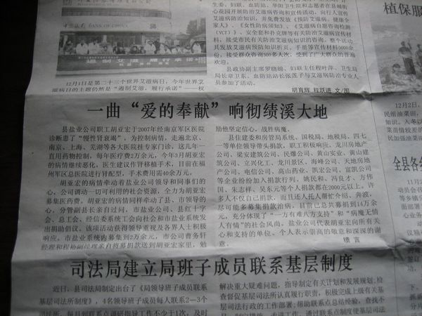 胡亞宏的病情牽動(dòng)著鹽業(yè)公司領(lǐng)導(dǎo)和同事們的心,公司調(diào)動(dòng)一切可利用的社會(huì)資源,全力為胡亞宏募集醫(yī)藥費(fèi)。胡亞宏的病情同樣牽動(dòng)了縣、市領(lǐng)導(dǎo)的心,分管副縣長(zhǎng)親自過(guò)問(wèn),市鹽業(yè)公司、縣紅十字會(huì)、總工會(huì)、經(jīng)信委系統(tǒng)工會(huì)向社會(huì)和市鹽業(yè)系統(tǒng)發(fā)出捐助倡議。該項(xiàng)活動(dòng)獲得領(lǐng)導(dǎo)重視及各界人士積極響應(yīng),市鹽業(yè)系統(tǒng)內(nèi)募集到2萬(wàn)余元,市公司曹務(wù)軒經(jīng)理和程裕副經(jīng)理親自將募捐款送到胡亞宏家里,勉勵(lì)他堅(jiān)定信心,戰(zhàn)勝病魔。