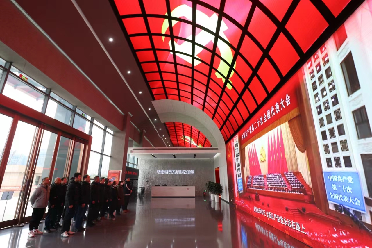 活動中,全體黨員面對黨旗莊嚴宣誓,重溫入黨誓詞。隨后,在講解員的引導下,大家分別參觀了以“永遠在路上”為主題的“紀律立黨 從嚴治黨”、“廉潤江淮 清風揚帆”、“以案為鑒 警鐘長鳴”、“不忘初心 永葆清廉”四大展廳,通過展板、圖片、視頻、雕塑、互動查詢、場景還原、體驗空間等多種形式,全方位回顧中國共產黨篳路藍縷的百年紀律建設史,深刻感受了安徽省委全面從嚴治黨、推進黨風廉政建設和反腐敗斗爭成果。詳實鮮活的案例給大家?guī)砹藦娏业乃枷霙_擊和心靈震撼,同志們深刻感受到了黨風廉政建設的重要性和必要性。
