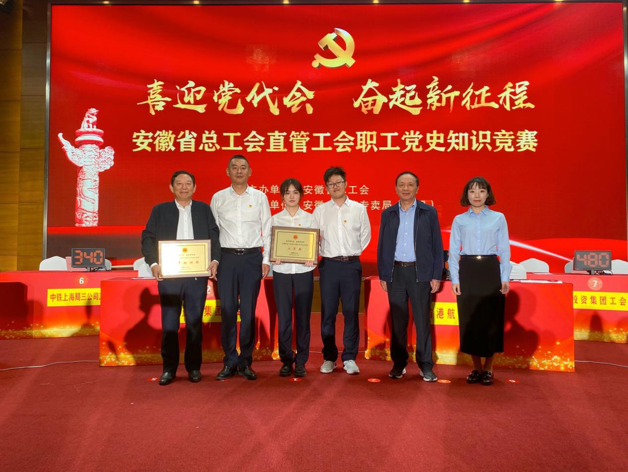 10月19日,在安徽省總工會舉辦的省總直管工會“喜迎黨代會 奮起新征程”黨史知識競賽上,由環(huán)境集團(tuán)周俊、順朝公司姚旋、酒店公司吳林組成的省鹽業(yè)集團(tuán)工會代表隊以第2名的成績榮獲二等獎,集團(tuán)工會獲優(yōu)秀組織獎,充分展示了集團(tuán)公司黨史學(xué)習(xí)教育成果和良好形象風(fēng)采。