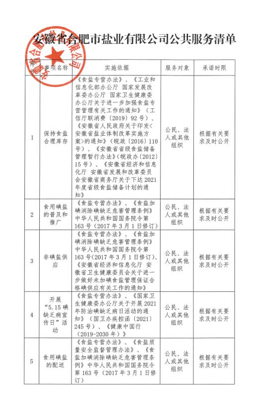 安徽省合肥市鹽業(yè)有限公司公共服務(wù)清單