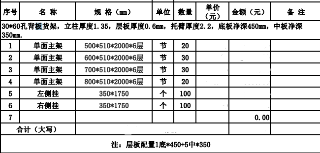 1.采購規(guī)模標(biāo)準(zhǔn):100個貨架。