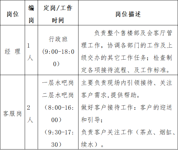 2、會(huì)客廳服務(wù)人員各崗位設(shè)置及職責(zé)分述