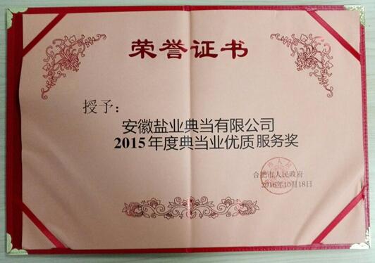 從合肥市政府獲悉,合肥市人民政府近日下發(fā)《關(guān)于2015年度金融機構(gòu)支持地方發(fā)展先進單位的通報》(合政秘〔2016〕103號)的文件,安徽鹽業(yè)典當有限公司憑借較好的經(jīng)營管理業(yè)績,榮獲合肥市政府年度通報表彰?;整}典當公司榮獲“2015年度典當業(yè)優(yōu)質(zhì)服務(wù)獎”。