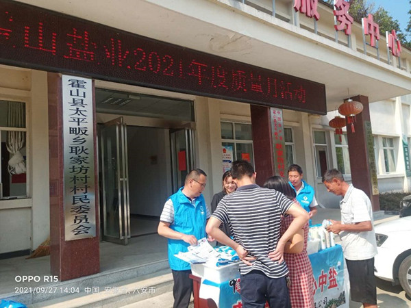 9月27日,霍山縣鹽業(yè)公司利用到太平畈鄉(xiāng)耿家坊村扶貧之際,結(jié)合鹽業(yè)發(fā)展公司《旺季市場營銷宣傳工作方案》“四進一參”相關(guān)要求,開展了“質(zhì)量月”主題宣傳活動。