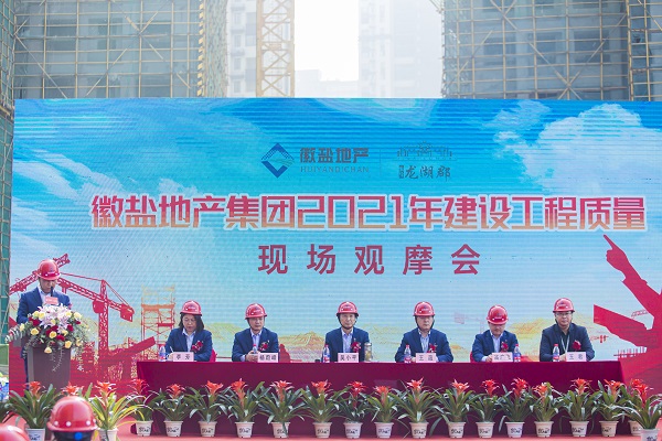 10月29日,徽鹽地產(chǎn)集團(tuán)公司在六安徽鹽龍湖郡項(xiàng)目舉行2021年建設(shè)工程質(zhì)量現(xiàn)場(chǎng)觀摩會(huì),通過(guò)觀精品、樹(shù)標(biāo)桿、強(qiáng)交流,促進(jìn)徽鹽地產(chǎn)工程質(zhì)量整體提升?;整}地產(chǎn)集團(tuán)公司領(lǐng)導(dǎo)班子、集團(tuán)本部中層負(fù)責(zé)人、各項(xiàng)目公司負(fù)責(zé)人、工程部門負(fù)責(zé)人,在建項(xiàng)目總包單位、監(jiān)理單位負(fù)責(zé)人,業(yè)主代表共200余人參加活動(dòng)。