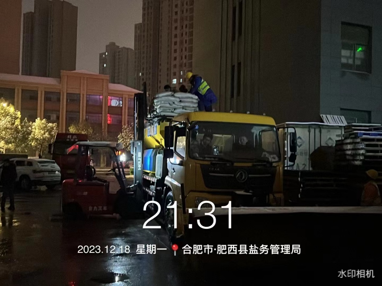雪情就是命令,合肥鹽業(yè)迅速啟動24小時保供機制。從18日23時到19日全天,合肥市、區(qū)城管局組織80余臺車輛緊急采購融雪鹽,公司領導全程現(xiàn)場指揮調度。公司黨員積極發(fā)揮先鋒模范作用,關鍵時刻挺膺擔當,全力以赴做好融雪鹽保供服務,共發(fā)出融雪鹽(劑)835噸。