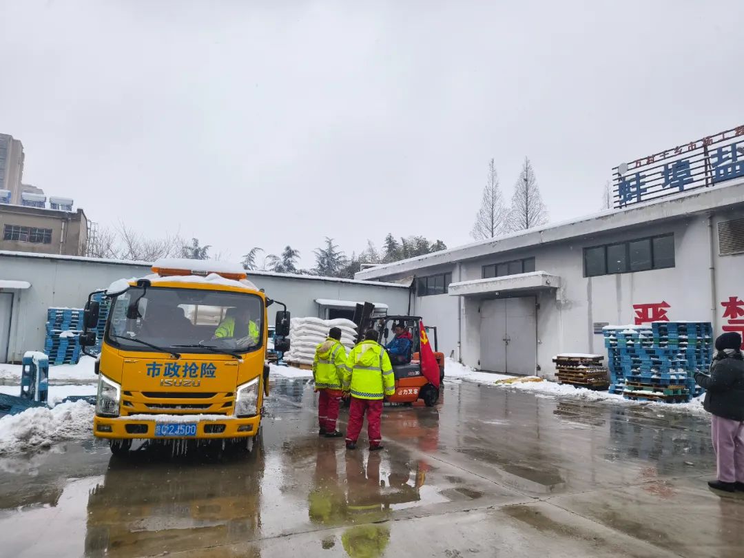 六安鹽業(yè)公司直屬黨支部黨員對接道路應(yīng)急單位,統(tǒng)籌安排融雪鹽保供。