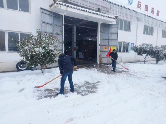 淮南鹽業(yè)公司職工清掃倉庫前積雪,保障運(yùn)送暢通。