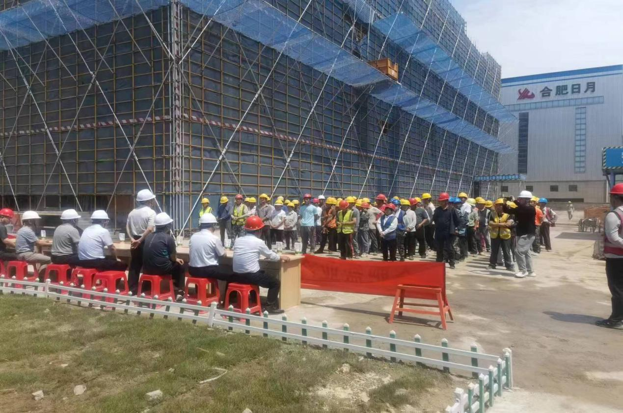 建設(shè)單位合肥市鹽業(yè)公司張鷹董事長宣布安全月啟動,并在啟動儀式上強(qiáng)調(diào):合肥鹽業(yè)冷鏈?zhǔn)称芳庸ぶ行捻?xiàng)目在各相關(guān)單位的相互配合下,在各位工友的辛勤勞動下,工程主體結(jié)構(gòu)已經(jīng)施工完成,對廣大一線施工人員的辛勤付出表示感謝。在第23個全國安全月來臨之際,應(yīng)該深刻認(rèn)識到安全的重要性。生命無價,預(yù)防安全是每個人的責(zé)任。即將進(jìn)入高溫天氣,一定要在確保安全的前提下,控質(zhì)量,抓進(jìn)度,注意人身安全,平平安安的完成好冷鏈項(xiàng)目建設(shè)。