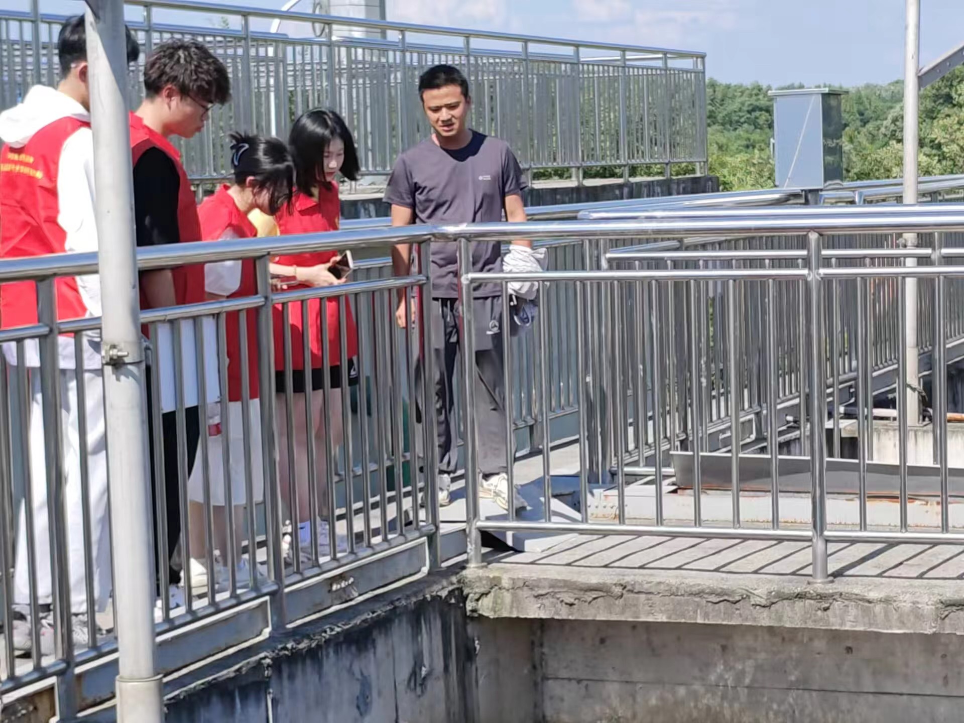 志愿者一行在技術(shù)人員帶領(lǐng)下,近距離接觸環(huán)保設(shè)施,依次參觀了誓節(jié)鎮(zhèn)第二污水處理廠的每一道工序,了解污水處理工藝及水質(zhì)凈化過程,探尋“污水變清”的秘密。技術(shù)人員詳細介紹了環(huán)境科技集團近年來以習近平生態(tài)文明思想為指引在污水處理領(lǐng)域的實踐與發(fā)展,并向大家科普水環(huán)境保護的重要意義,引導(dǎo)大家節(jié)水惜水愛水,共建美麗幸福家園。