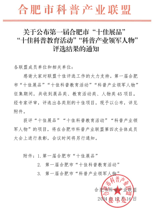 合肥鹽業(yè)先后獲評合肥市科普教育基地、安徽省科普示范單位、安徽省科學技術普及基地。