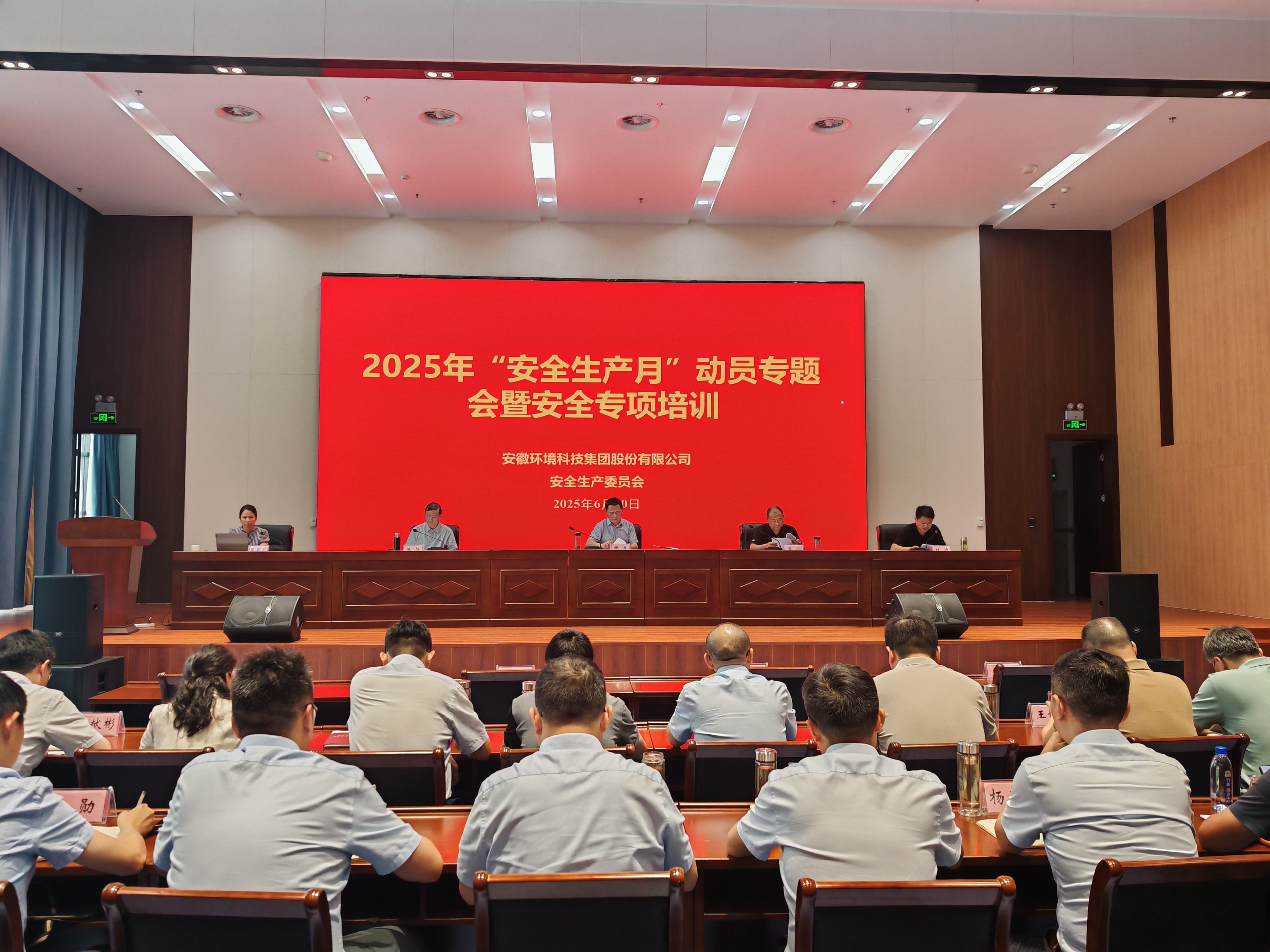 為深入貫徹落實國家關于安全生產(chǎn)工作的決策部署,強化全員安全意識,壓實安全責任鏈條,安徽環(huán)境科技集團于6月10日下午隆重召開2025年“安全生產(chǎn)月”動員暨安全專項培訓會,正式拉開以“人人講安全、個個會應急——查找身邊安全隱患”為主題的安全生產(chǎn)月活動序幕。集團領導班子成員、各部門、各子(項目)公司主要負責人、分管安全領導及專兼職安全管理人員等百余人現(xiàn)場參會。